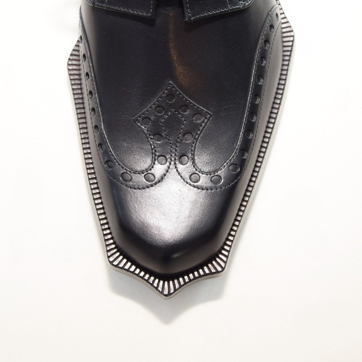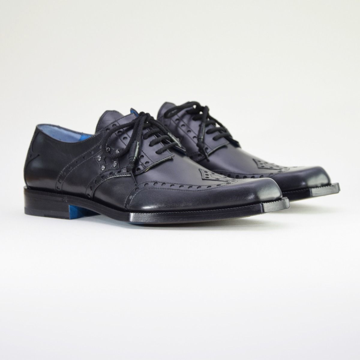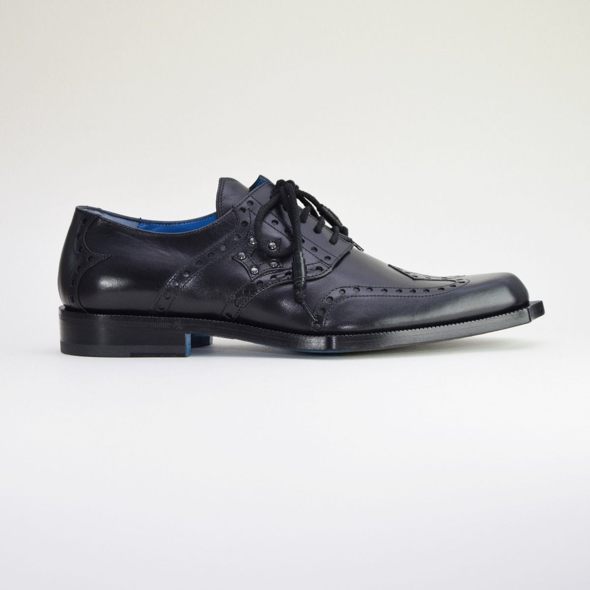 This stylish lace-up derby shoe carries the Twisk hallmarks of quality in every handmade stitch. Premium calf leather from Italy’s best tanneries is cut by hand and finished with brogueing and metal studs in a characteristic star formation on either side of the shoe. While classic in concept, the unique toe shaping makes Rogue a truly groundbreaking style for the modern gentleman.