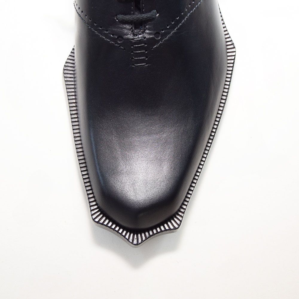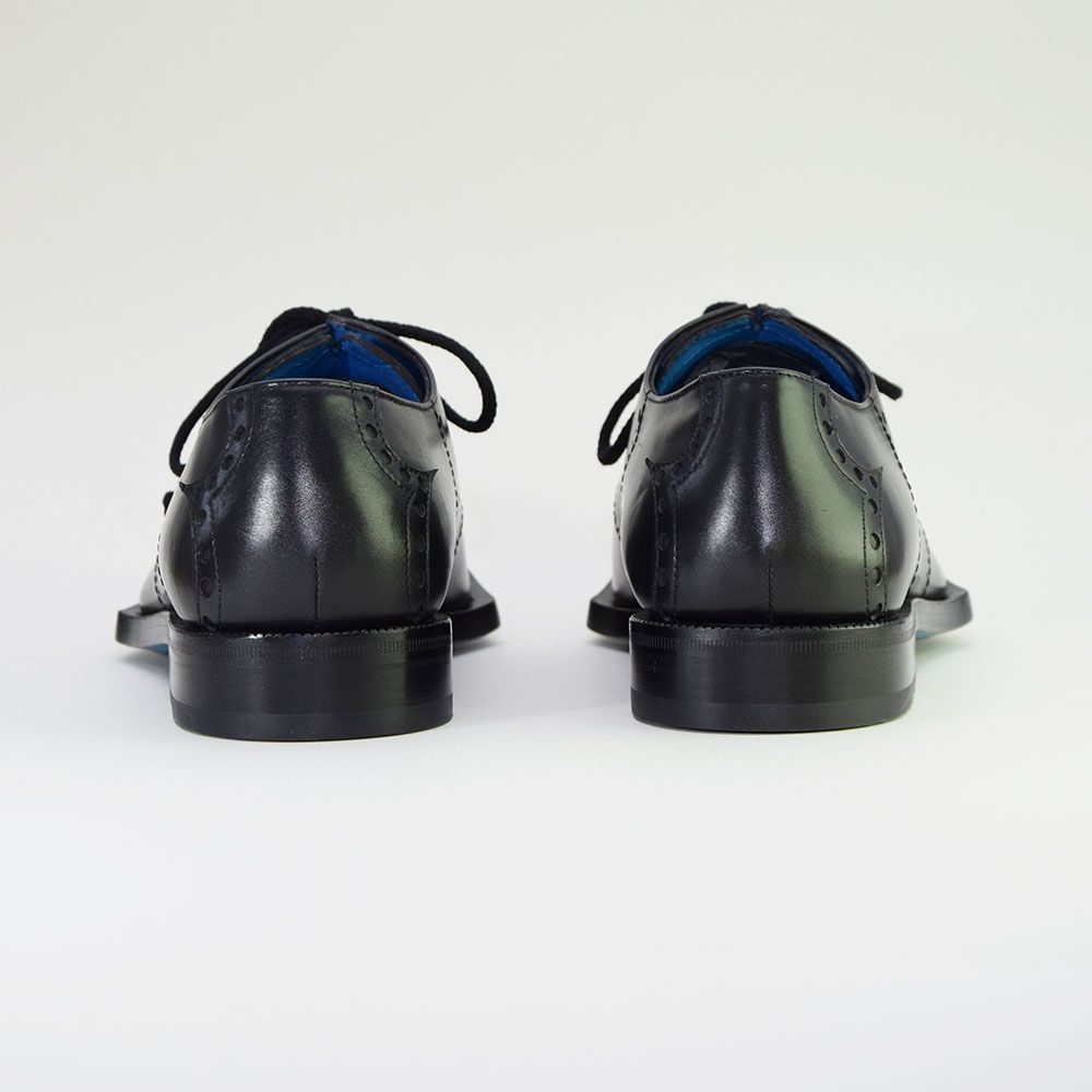 The San Lorenzo style is a perfect example of when simplicity meets style. This Black leather elegant men’s formal shoe, featuring clean lines and a strong silhouette. Made from the finest calf leather snd hand punched star detailing. The exquisite hand stitching make this a wardrobe staple for the discerning dresser.