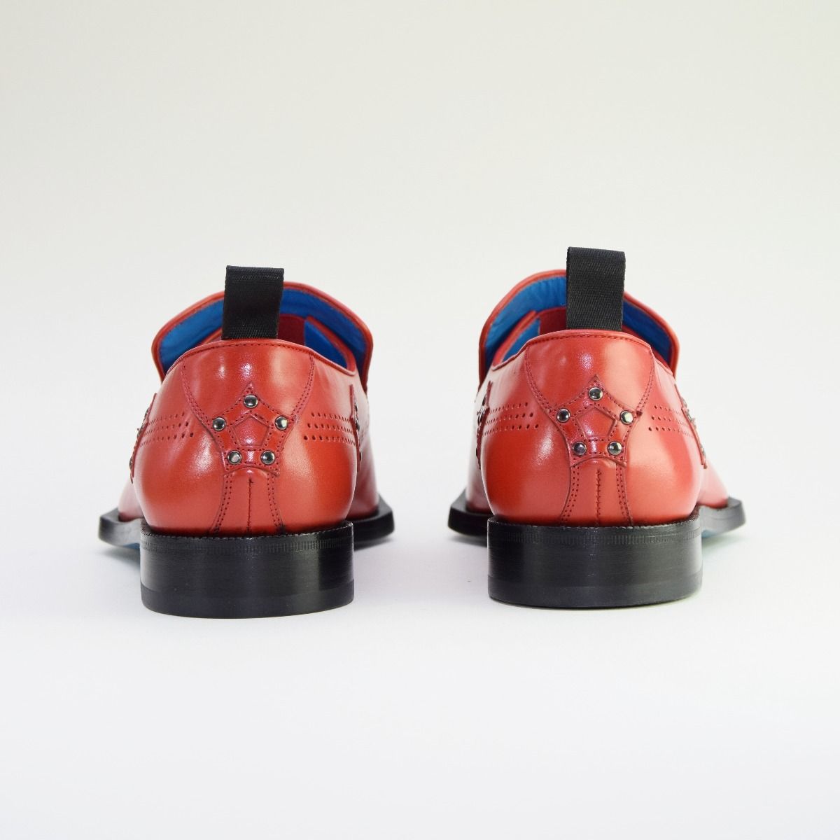 With its unique toe shape and distinctive double stitched detailing, the Swindler is an avant-garde and elegant slip-on dress shoe, crafted by Italian master shoemakers. Hand cut from the finest calf leather, Blake stitched and finished with the Twisk hallmark star-formation studs, this deep lustre slimline shoe is designed to make a confident style statement.