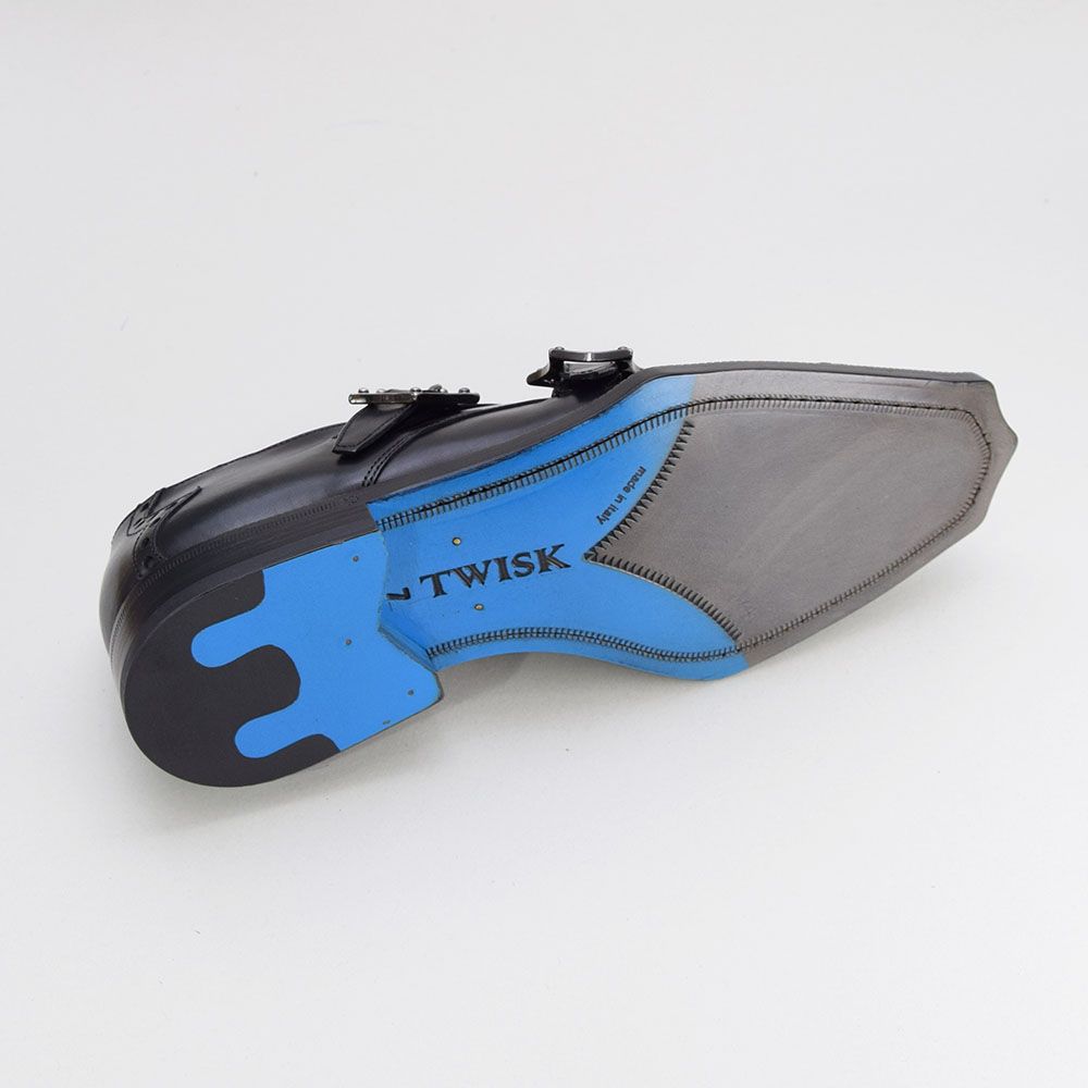 With it's elegant design the Volterra is a handmade monkstrap men’s shoe featuring two of the five-point star buckles unique to Twisk designs. One of our more intimate and elaborate styles, built for a lasting love story, this version of the Volterra is made from the highest quality leather and hand coloured in black for a smart professional look. This style is perfect for both formal and casual looks.